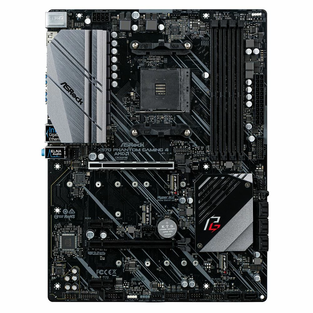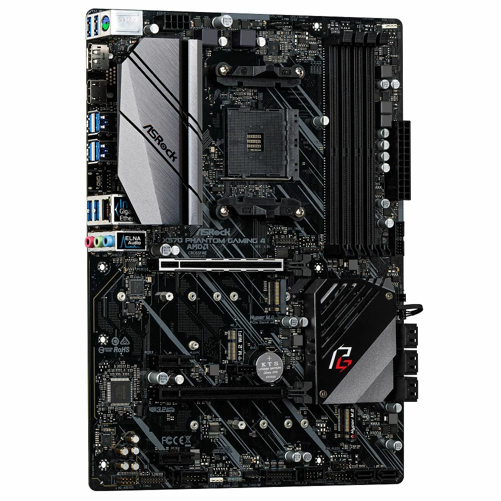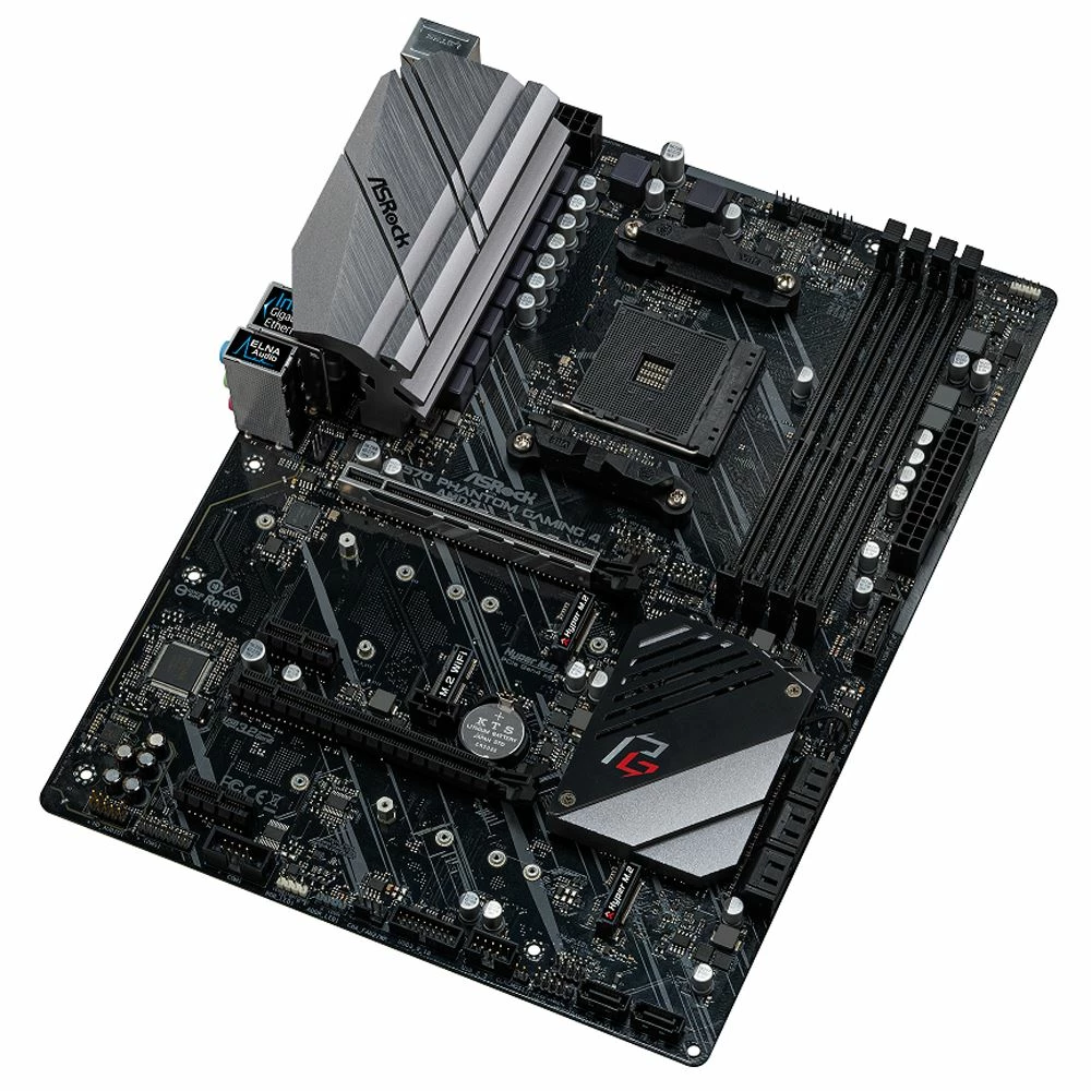 Supports AMD AM4 Socket Ryzen 2000 and 3000 Series processors Power Phase Design Supports DDR4 4400 (OC) PCIe 4.0 x16, 1 PCIe 4.0 x1, 1 M.2(Key E) For WiFi AMD Quad CrossFireX and CrossFireX Graphics Output Options: HDMI, DisplayPort 7.1 CH HD Audio (Realtek ALC1200 Audio Codec), ELNA Audio Caps SATA3, 1 Hyper M.2 (PCIe Gen4 x4 & SATA3), Hyper M.2 (PCIe Gen4 x4) USB 3.2 Gen2 (Rear Type A C), 8 USB 3.2 Gen1 (2 Front, 6 Rear) Intel Gigabit LAN ASRock Polychrome SYNC.