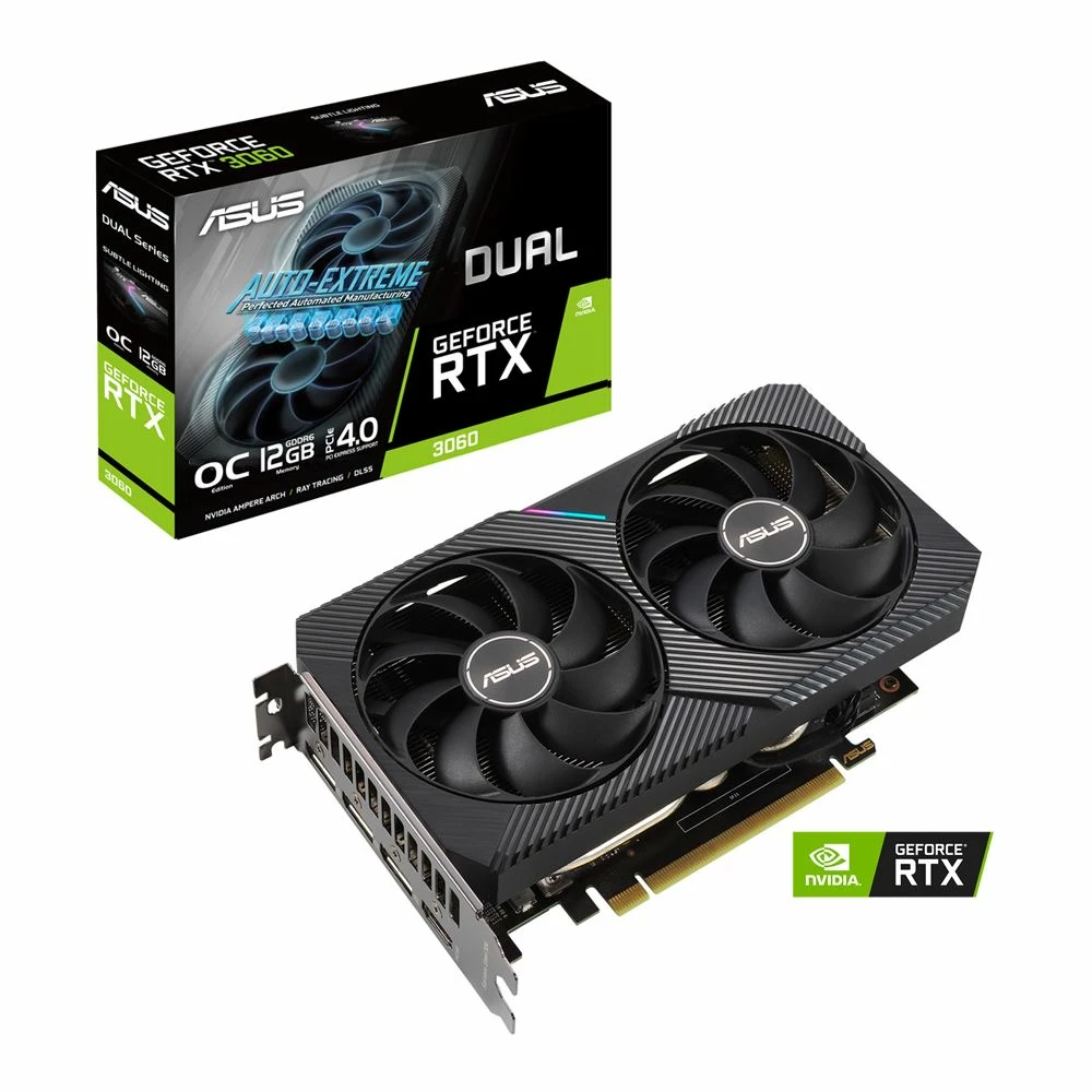 Featuring the latest NVIDIA Ampere architecture, ASUS Dual GeForce RTX 3060 fuses dynamic thermal performance with broad compatibility. Advanced cooling solutions from flagship graphics cards – including two Axial-tech fans for maximizing airflow to the heatsink – are packed into the 20 cm long, 2-slot card, delivering more power in less space. These enhancements make ASUS Dual the perfect choice for gamers who want heavyweight graphics performance in a compact build.