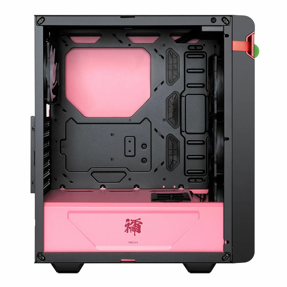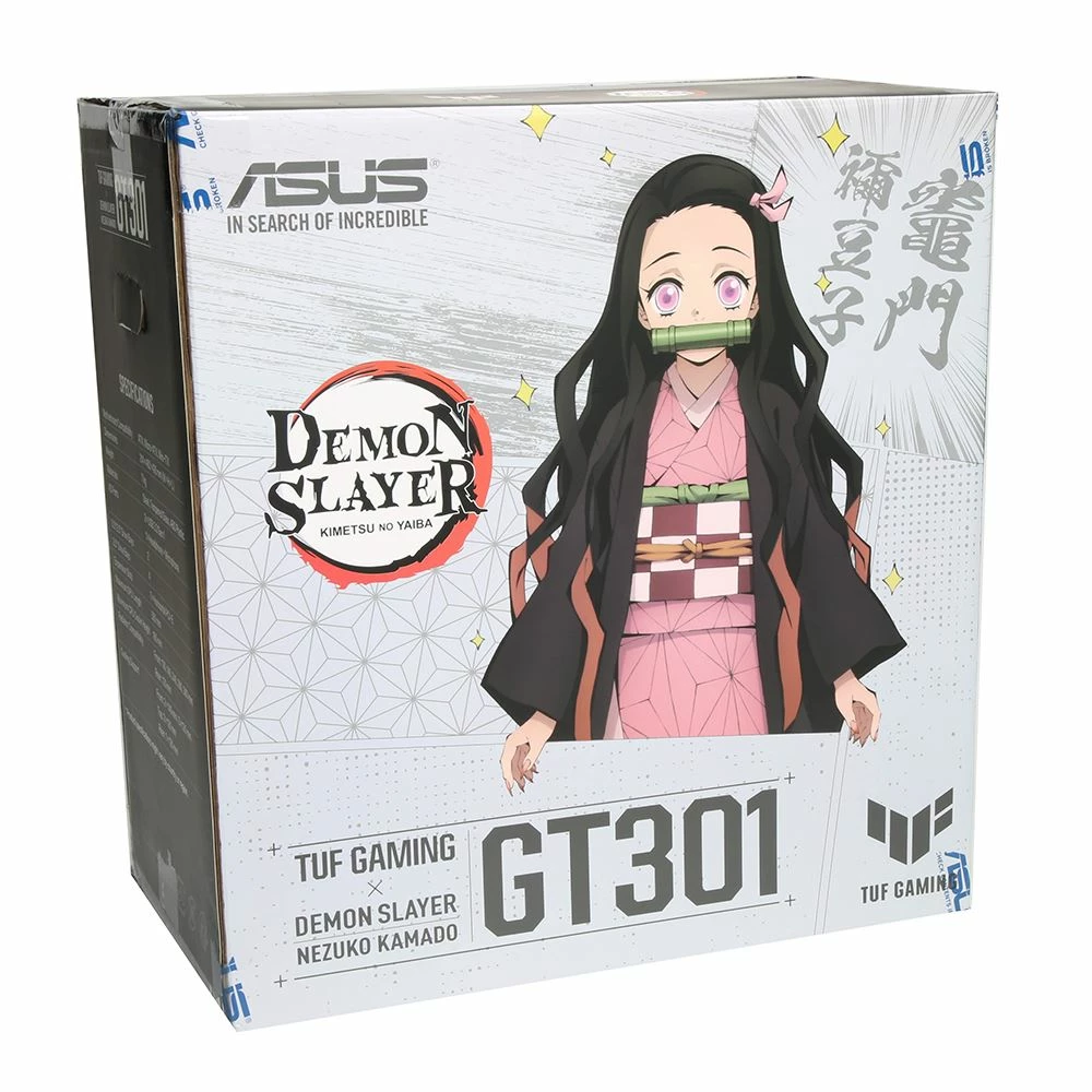 ASUS TUF GT301 NEZUKO Mid-Tower Compact Case Demon Slayer Edition. A perforated honeycomb design spread across the front and top of the chassis aids airflow and also lends some style to an already unique aesthetic. With 120mm Aura Addressable RBG Fans, Headphone Hanger, and 360mm Radiator Support.