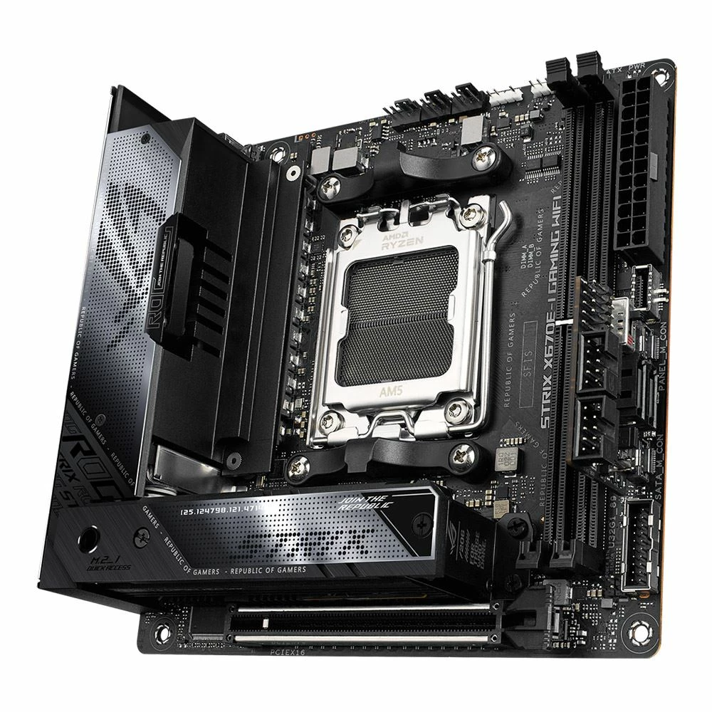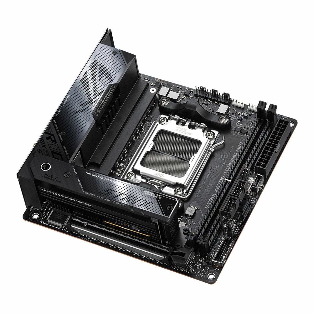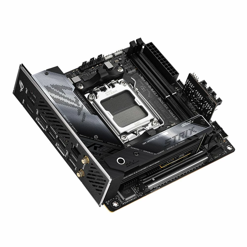 The ROG Strix X670E-I Gaming WiFi crams the latest tech into the diminutive mini-ITX footprint and then branches out with the ROG Hive to put vital controls and I/O at your fingertips. At motherboard level, PCIe 5.0 slots for graphics and storage ride alongside dual-channel DDR5 to bring large-scale bandwidth to games and CPU-intensive workloads. Heavyweight power delivery and vertically-stacked heatsinks crush thermals and lay a potent foundation for exclusive ROG overclocking tools to push performance boundaries. With all this and more, this tiny titan dishes up a space-saving AM5 build that allows you to comfortably host larger displays and a spread of ROG gaming peripherals on your desktop.