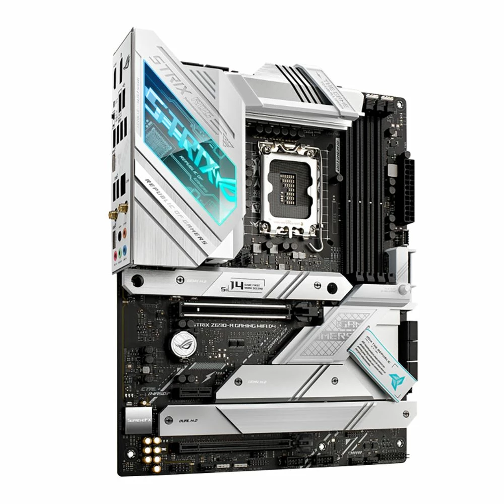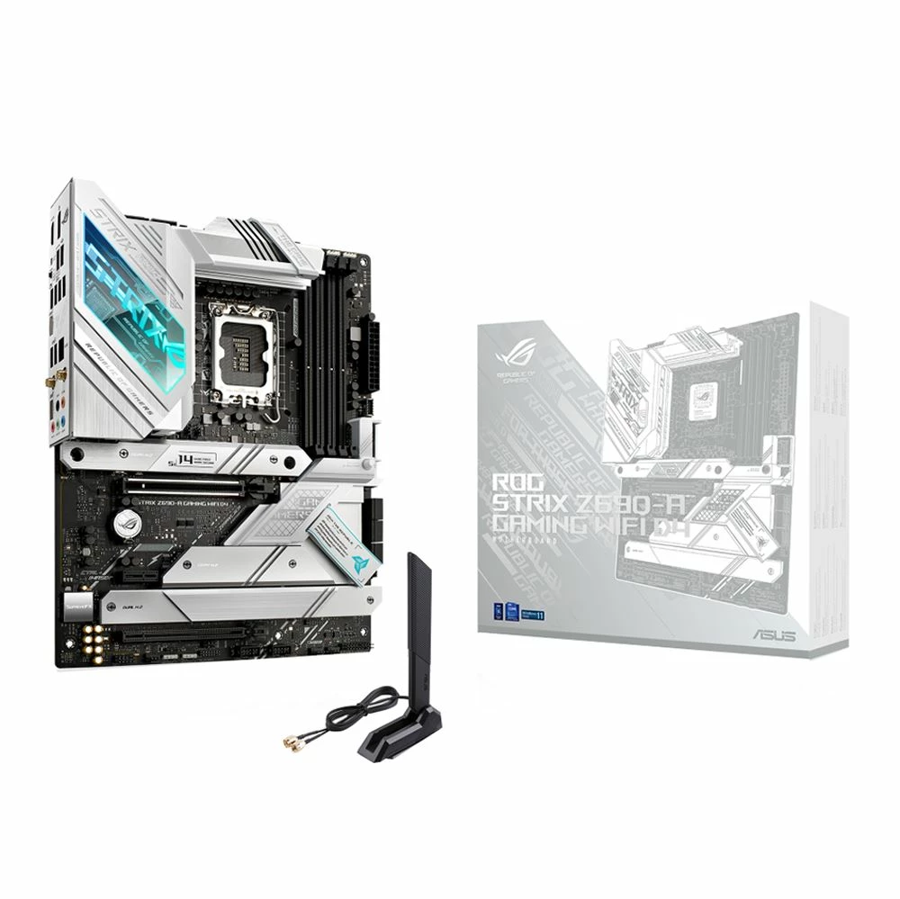 The ROG Strix Z690-A Gaming WiFi D4 motherboard deploys robust power delivery and cooling to unleash the full force of 12th Gen Intel Core processors, all orchestrated by ASUS-exclusive intelligent controls that deliver advanced user experiences. Meanwhile, onboard WiFi 6 and ample PCIe 4.0 M.2 slots bring the speed that you need, and DIY-friendly innovations help simplify the PC building process. To top it all off, Strix Z690-A Gaming WiFi D4 dazzles with customizable RGB lighting and a refined brushed-metal finish.