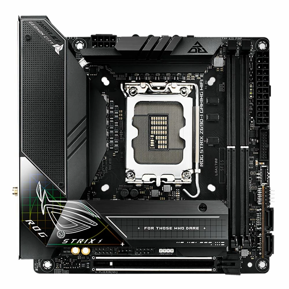 The ROG Strix Z690-I Gaming WiFi packs premium-grade power delivery and triple-decker cooling into a compact mini-ITX form factor to unleash the full force of 12th Gen Intel Core processors. Framerates and load times can be boosted even further by all-new support for DDR5 memory and PCIe 5.0. Plus, onboard WiFi 6E and PCIe 4.0 M.2 slots bring lightning-fast performance to an endless variety of scenarios. On top of all that, DIY-friendly innovations help simplify the PC building process, so even novice builders can quickly get to serious gaming.