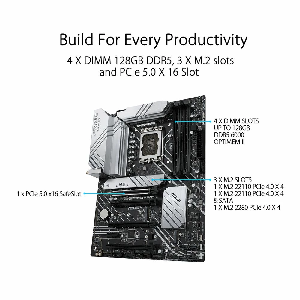 ASUS Prime series motherboards are expertly engineered to unleash the full potential of 12th Generation Intel processors. Boasting a robust power design, comprehensive cooling solutions and intelligent tuning options, Prime Z690-P WIFI provides users and PC DIY builders a range of performance tuning options via intuitive software and firmware features.