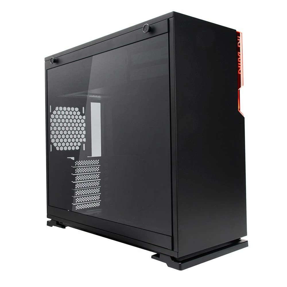 The 101 hosts a hidden power button, which discretely intermixes with the unique LED logo. The front bezel lights up as the system is powered on. To keep the front simple and clean, the front I/O is positioned at the top, which grants easier access for PCs stored under desks or tables.