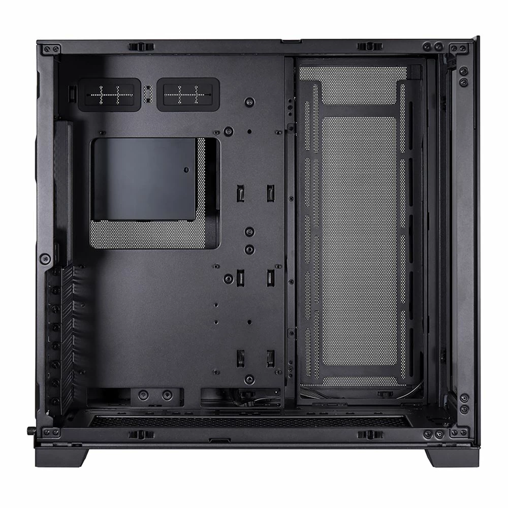 With only a few steps, the O11D EVO can be flipped in reverse mode to experience a seamless front and side tempered glass showroom view on the right side of the chassis. With only a few steps, the O11D EVO can be flipped in reverse mode to experience a seamless front and side tempered glass showroom view on the right side of the chassis.