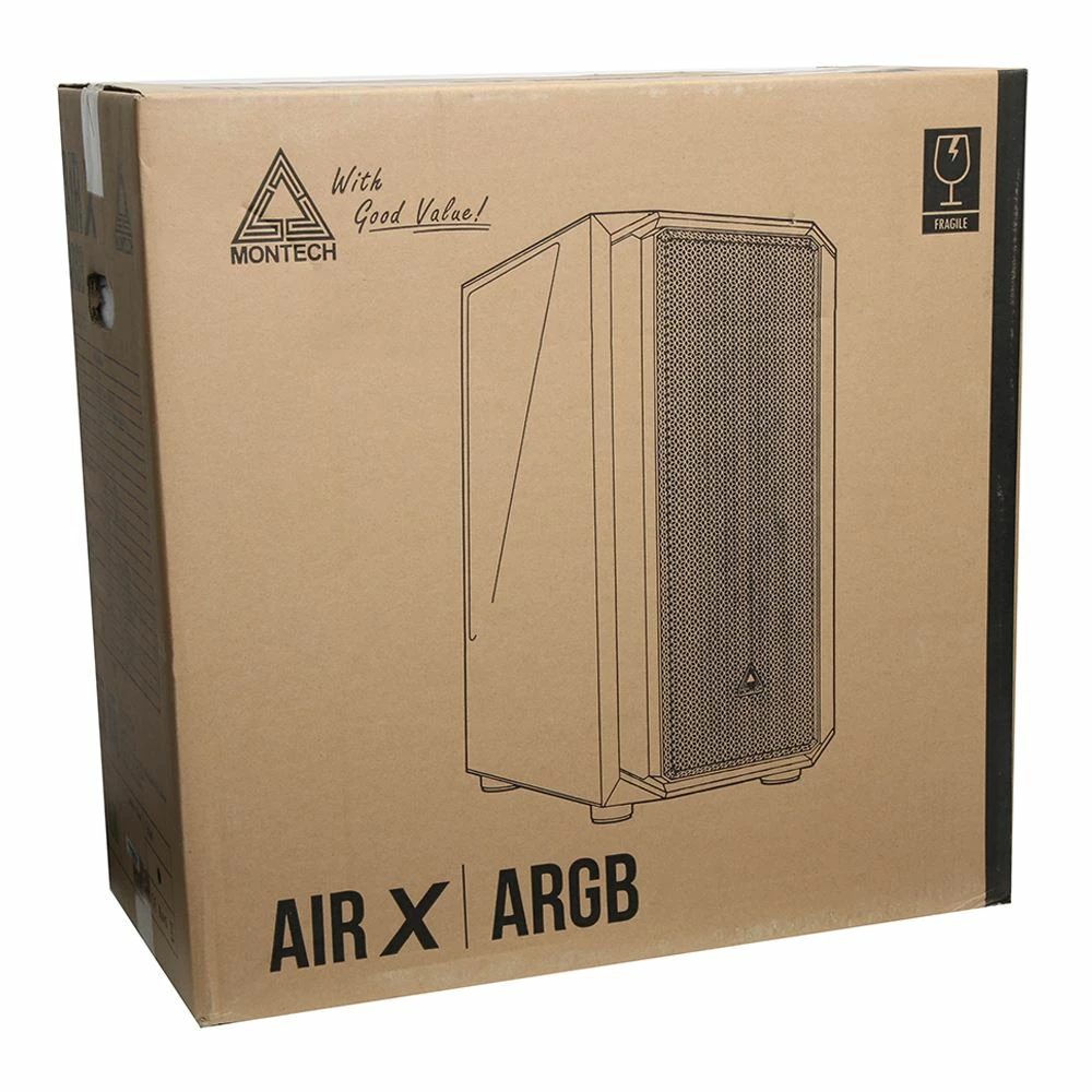 The Montech AIR X ARGB Compact ATX PC Case from our best selling AIR 900 series. What stands out with the AIR X ARGB is it’s large surface metallic Diamond Mesh front air intake mesh with two 200mm ARGB fans. Included is another 120mm ARGB fan for a total three fans and maximum air intake area for incredible cooling performance and the aesthetics to match.