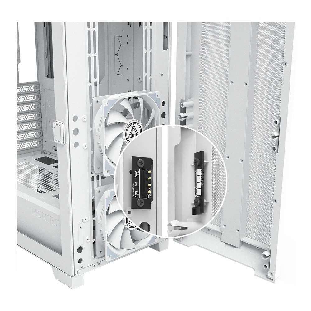 The SKY series is Montech’s high-end line of PC cases. The SKY series puts extreme prejudice and focus on details and materials. SKY ONE LITE is the entry model in the SKY family. It keeps all the features and high-end designs while offering lower price. Three front USB ports including a USB 3.1 Gen 2 Type-C, which can achieve higher transmission efficiency and supports high-speed external storage. SKY ONE incorporates MONTECH’s unique “Air Performance Fine Mesh” design front panel. This mesh not only allows for maximum airflow through the entire front panel, but also effectively prevents dust from entering. SKY ONE LITE comes with 3x 120mm high airflow fans pre-installed, plus top and back aerodynamic openings. The SKY ONE LITE effectively keeps temps in control even during high loads. The ARGB Lighting Strip is mounted onto the front panel but uses contact-based Connection Link for ARGB signals back to the case. So, when removing the front panel, the ARGB Lighting Strip automatically disconnects and turns off. There are no additional wires connecting the front panel and case, the whole process is hassle free!