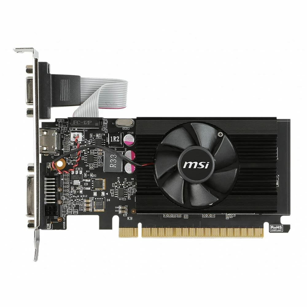 Step up to dedicated graphics for accelerated app running and more responsive overall experience. This MSI GeForce GT 710 video card with single-fan design is based on advanced GPU architecture and delivers more awesome features and superior performance over integrated graphics. You’ll enjoy faster web browsing, video editing, photo editing plus smoother and more detailed gaming without annoying glitches. It’s also equipped with three outputs, eligible for two-display settings for expanded on-screen real estate and enhanced productivity. It can fit in systems of various sizes with a low profile design.