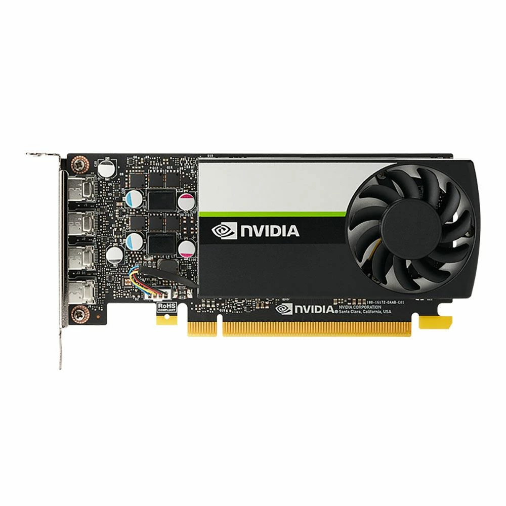 The NVIDIA T1000, built on the NVIDIA Turing GPU architecture, is a powerful, low profile solution that delivers the full-size features, performance and capabilities required by demanding professional applications in a compact graphics card. Featuring 896 CUDA cores and 4GB of GDDR6 memory, the T1000 enables professionals to tackle multi-app workflows, from 3D modeling to video editing. Support for up to four 5K displays gives you the expansive visual workspace to view your work in stunning detail.