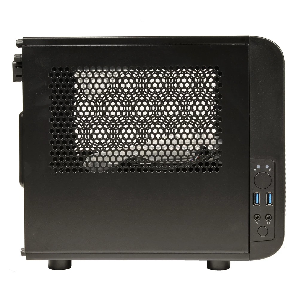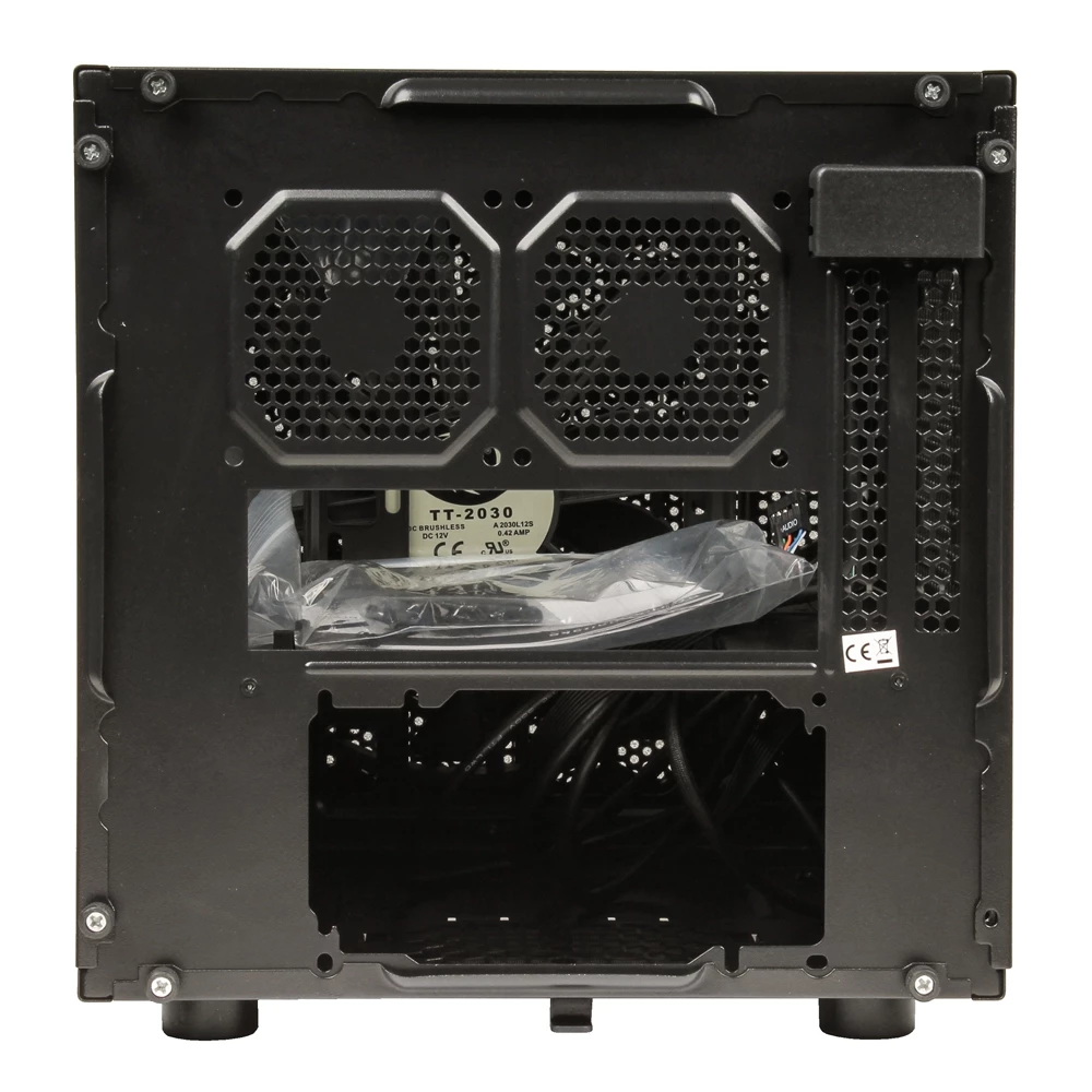 The new Core V1 represented by Thermaltake is a small and cute ITX based chassis with a 200mm fan in the front panel. Smart interchangeable side panels allow users to flip it accordingly to showcase either for superior liquid cooling or superb airflow, which allows you to make your own personal setup. You not only grant to have a really powerful mini system, it also has the ability to house various overclocking components to keep it really cool!