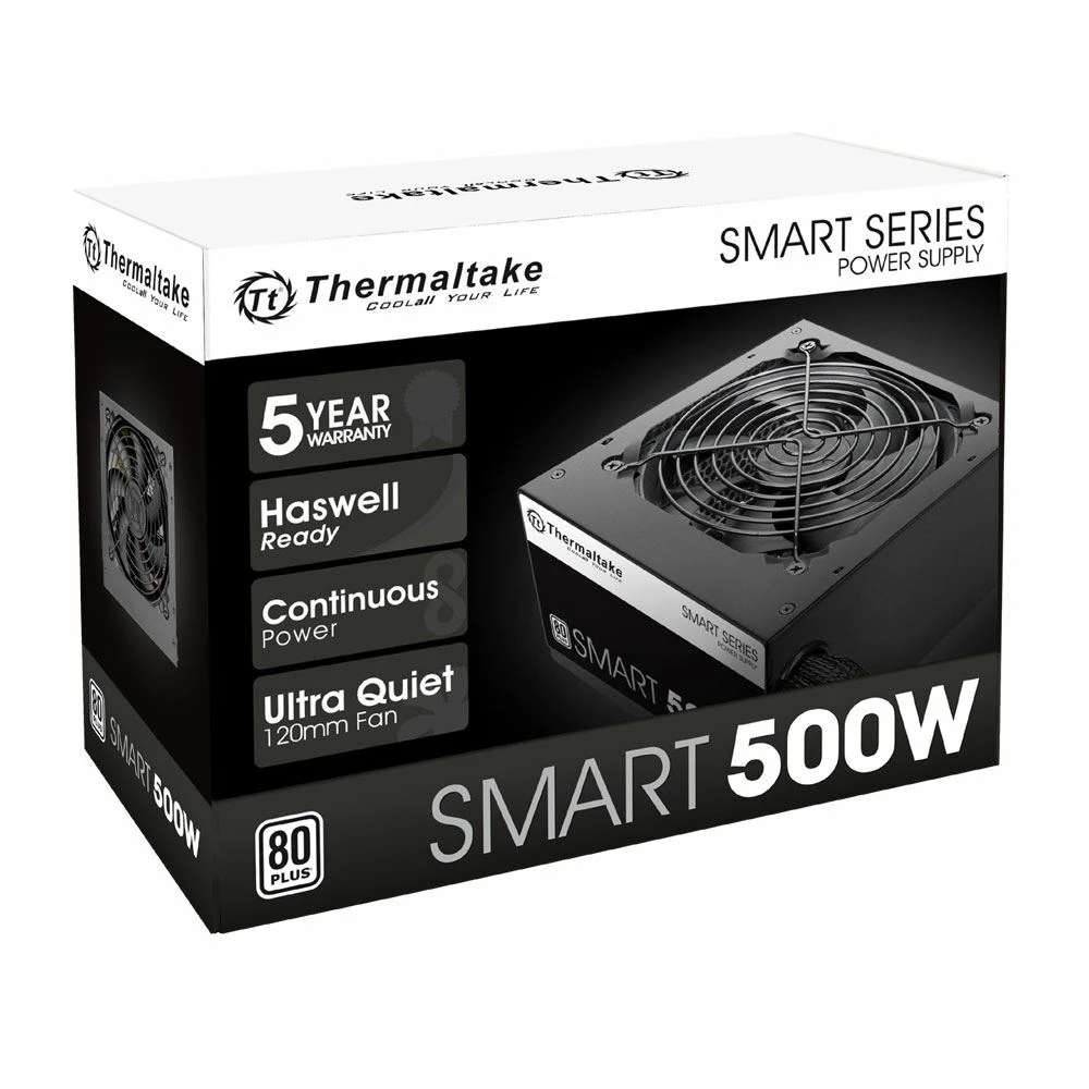 Save Smart with Thermaltake’s latest budget friendly power solutions, the Smart Series Power Supplies. Offering 80 PLUS Certified models for a effective power solution. All Smart Series power supplies offer an excellent 5 year warranty and Continuous Power design, provide clean reliable power for years to come. Available in 500W, 600W and 700W models, power a wide range of system configurations to gain the power you need at the best price. The right choice is always a Smart choice with Thermaltake Smart Series Power Supplies!